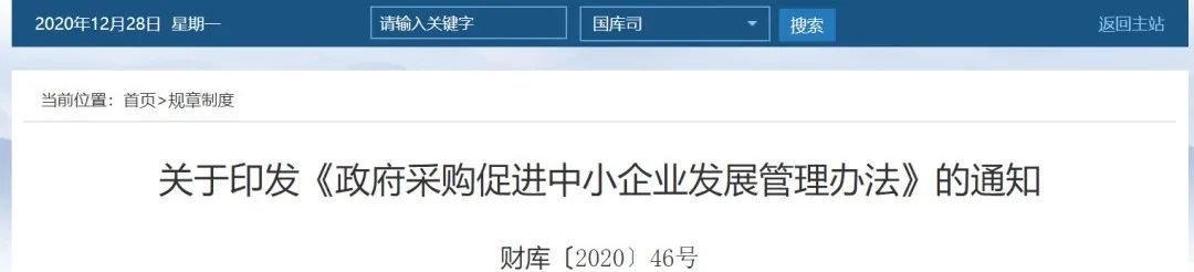 近日,财政部、工业和信息化部出台《政府采购促进中小企业发展管理办法》,2021年1月1日起施行